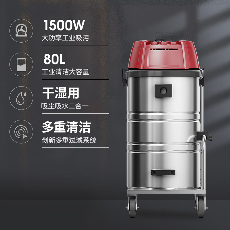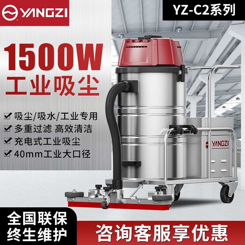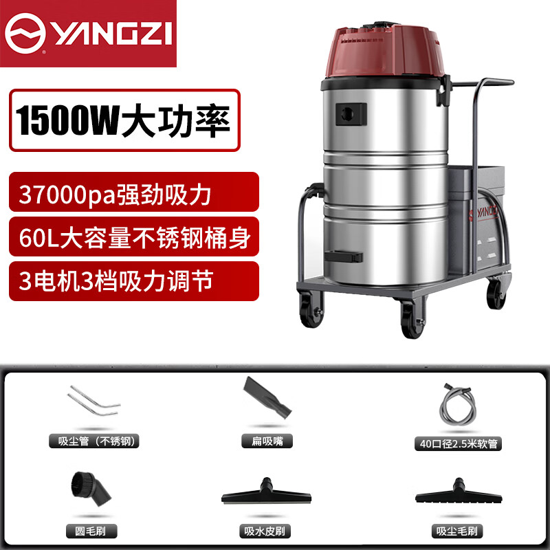 銅芯電機大功率更潔凈,1500W揚子電機功率,370mba真空大吸力,干濕兩用一機多能,40MM工業口徑常見碎屑輕松搞定。