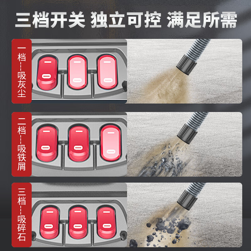 2200W工業(yè)吸塵器,多效吸塵/改變傳統(tǒng)清潔/無線潔凈,分離式桶身使用更便捷,聚脂釬維覆膜濾芯,過濾精度可達1微米,過濾效果達到百分之99.9%以上