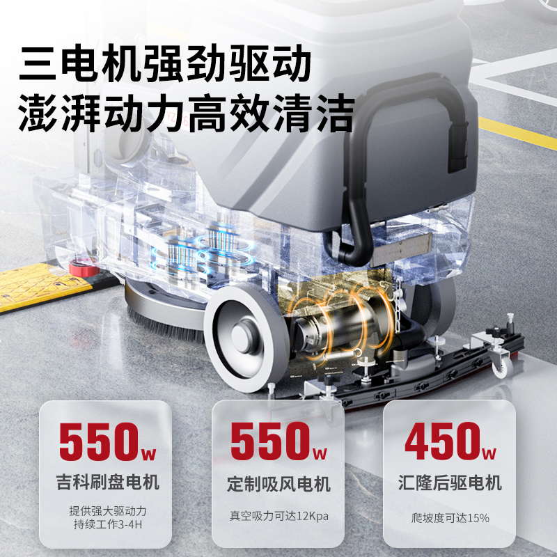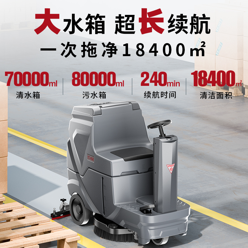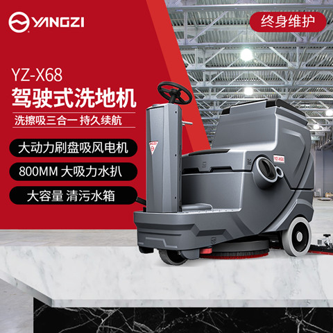 揚子X68駕駛式洗地機一機解決地面清潔問題,能夠代替8-10名環衛人員的工作量。充滿電以后可以使用3-4h,無需頻繁注水換水,使用起來更加省時省。