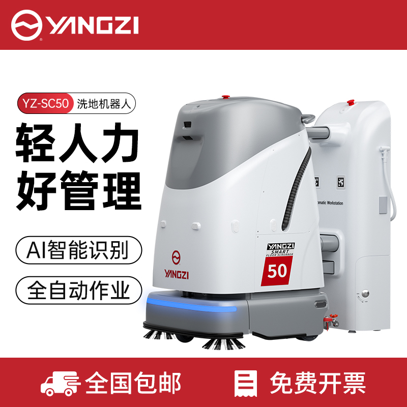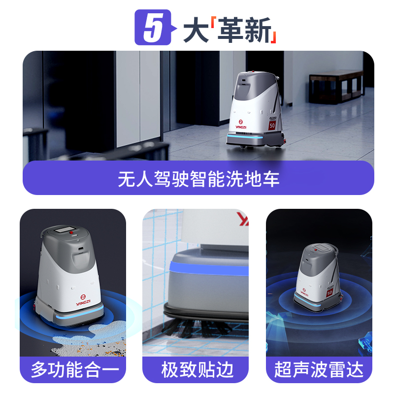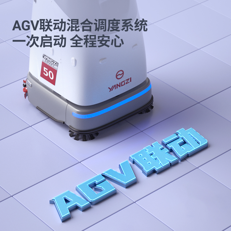 揚子洗地機器人YZ-SC50,AGV聯動混合調度系統一次啟動全程安心,支持洗地車與AGV同場運行,互不干擾。