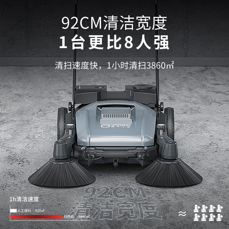 揚子YZ-S1手推式掃地機主要依靠滾刷、邊刷來完成清掃工作,結構相對簡單,操作方便快捷,整機不需要任何電動助力,不用油、不用電,只需步行推動就能把垃圾輕松回收到垃圾箱,